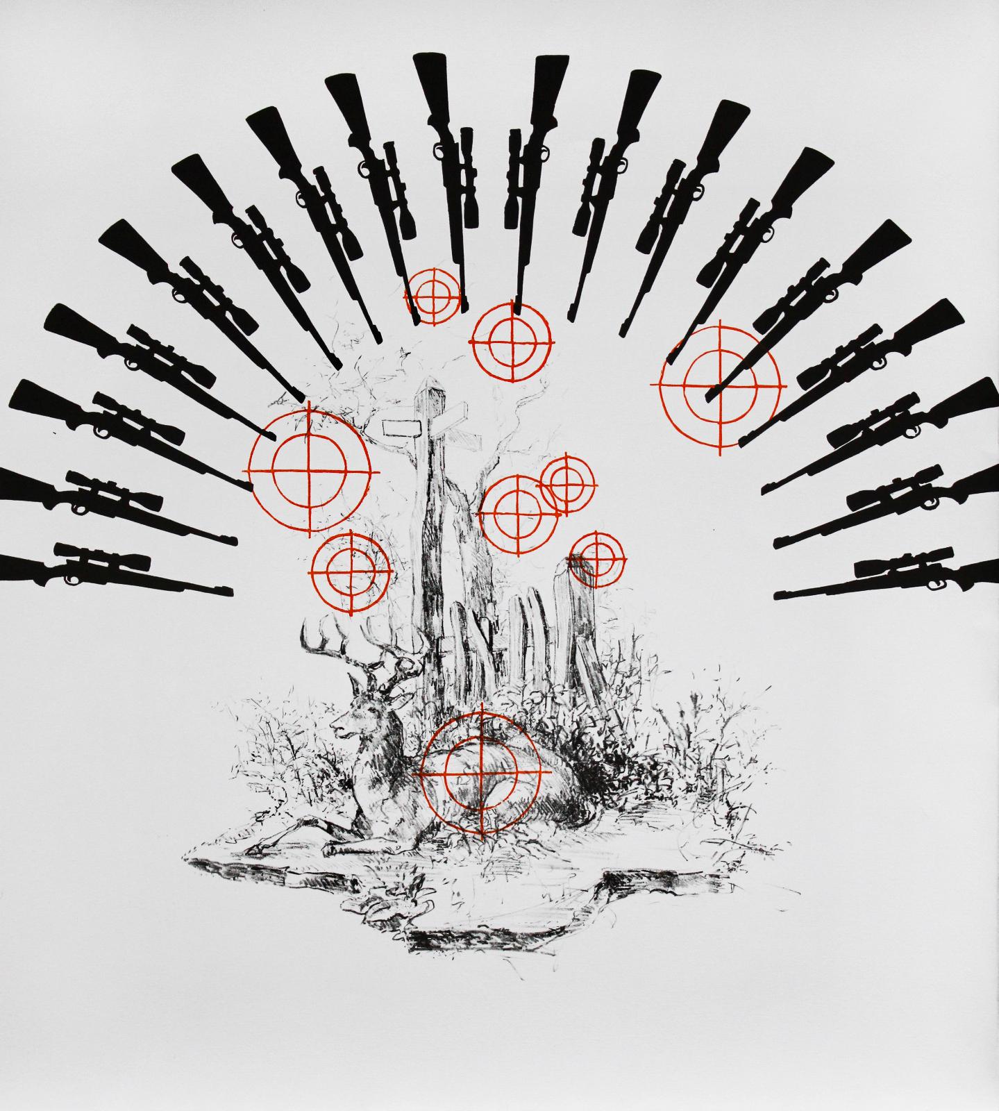 -22/73 | Karin Brosa, Oh my deer 1, 2023, Lithographie, Linolschnitt, Auflage 7, 42,0 x 38,0 cm (Blattgröße), 60 x 50 cm (Rahmengröße), Preis auf Anfrage