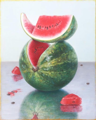 Früchtestillleben, Mirko Schallenberg, Schein-Sein, 2018, Öl auf Leinwand, 50 cm x 50 cm, Preis auf Anfrage, Galerie Cyprian Brenner