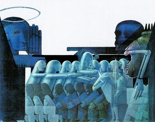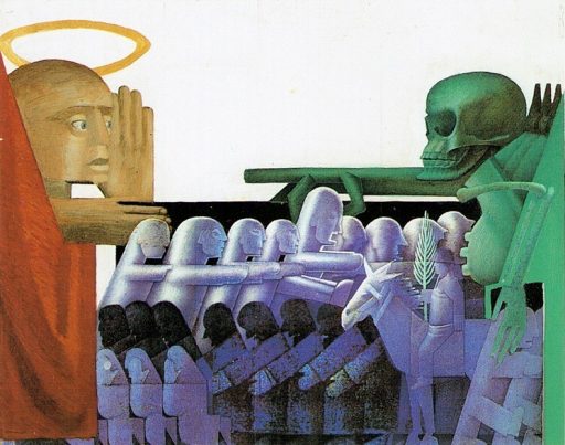 Ikonische Meisterwerke, Peter König, 2. Freskoentwurf zum Thema Leben und Tod, Mischtechnik auf Papier, 36×46 cm, 1995, Preis auf Anfrage, Galerie Cyprian Brenner